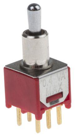 This is DPDT Toggle Switch On-Off-On PCB manufactured by RS Pro. The manufacturer part number is 734-7195. It features a 20mω contact resistance. The actuator is a 5.33mm long. The product complies with all safety standards, such as rohs & lead free. The product is available in pcb configuration. The product has -30 +85°c of operating temperature range. The rated contact current is 400 ma @ 20 v dc. The panel has a 4.95mm cut-out diameter. The contact is equipped with dpdt configuration. The panel cut out size includes 4.95mm. Whereas, the minimum operating temperature of the product is -30°c. The actuator is designed from sturdy chromium plated brass material. The product also provide mechanical stability with 30000cycles. It provides on-off-on switch operation. It has a maximum operating temperature of +85°c. The terminal is a through hole type. The product is made from sturdy gold plated brass materials.