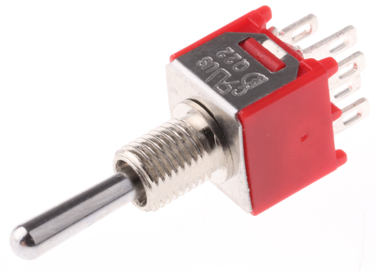 This is DPDT Toggle Switch On-On-On Panel Mount manufactured by RS Pro. The manufacturer part number is 734-7202. It features a 0.02ω contact resistance. The actuator is a 9.4mm long. The product complies with all safety standards, such as rohs & lead free. The product is available in panel mount configuration. The product has -30 → +85°c of operating temperature range. The rated contact current is 3 a @ 120 v ac. The panel has a 4.95mm cut-out diameter. The contact is equipped with dpdt configuration. The panel cut out size includes 4.95mm. The actuator is designed from sturdy chromium plated brass material. Whereas, the minimum operating temperature of the product is -30°c. The product also provide mechanical stability with 30000cycles. It provides on-on-on switch operation. It has a maximum operating temperature of +85°c. The terminal is a solder type. The product is made from sturdy silver plated brass materials.