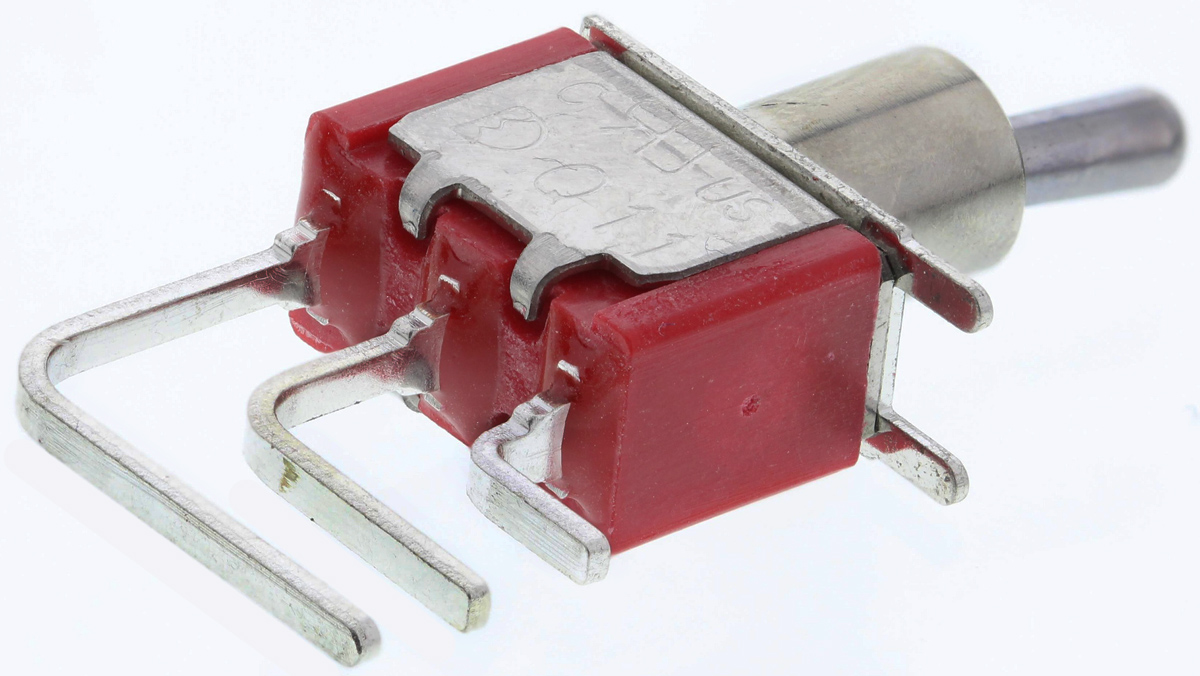 This is SPDT Toggle Switch On-On PCB manufactured by RS Pro. The manufacturer part number is 734-7107. It features a 0.01ω contact resistance. The actuator is a 5.08mm long. The product complies with all safety standards, such as rohs & lead free. The product is available in pcb configuration. The product has -30 → +85°c of operating temperature range. The rated contact current is 5 a @ 250 v ac. The panel has a 6.35mm cut-out diameter. The contact is equipped with spdt configuration. The panel cut out size includes 6.35mm. The actuator is designed from sturdy chromium plated brass material. Whereas, the minimum operating temperature of the product is -30°c. The product also provide mechanical stability with 40000cycles. It provides on-(on) switch operation. It has a maximum operating temperature of +85°c. The terminal is a through hole type. The product is made from sturdy silver plated brass materials.