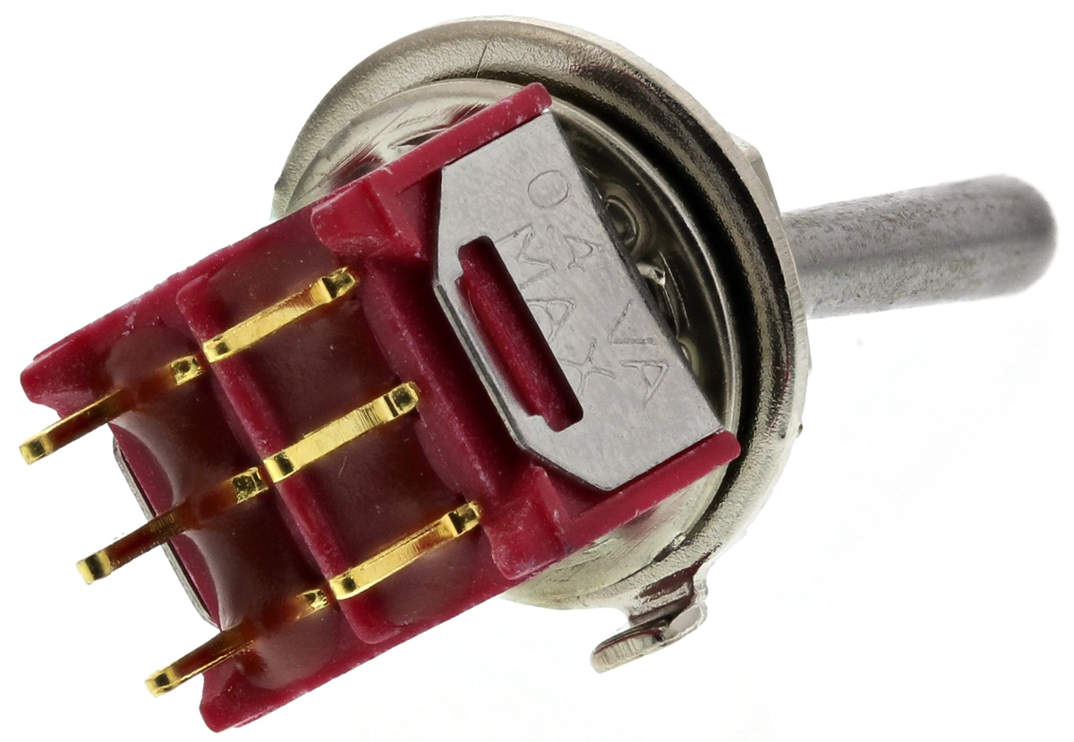 This is DPDT Toggle Switch On-On PCB manufactured by RS Pro. The manufacturer part number is 450-2803. It features a 0.02ω contact resistance. The actuator is a 10.41mm long. The product complies with all safety standards, such as ul listed. The product is available in pcb configuration. The product has -30 → +85°c of operating temperature range. The rated contact current is 400 ma @ 20 v dc. The contact is equipped with dpdt configuration. The actuator is designed from sturdy chrome plated brass material. Whereas, the minimum operating temperature of the product is -30°c. It provides on-on switch operation. It has a maximum operating temperature of +85°c. The terminal is a through hole type. The product is made from sturdy gold over nickel plated brass materials.