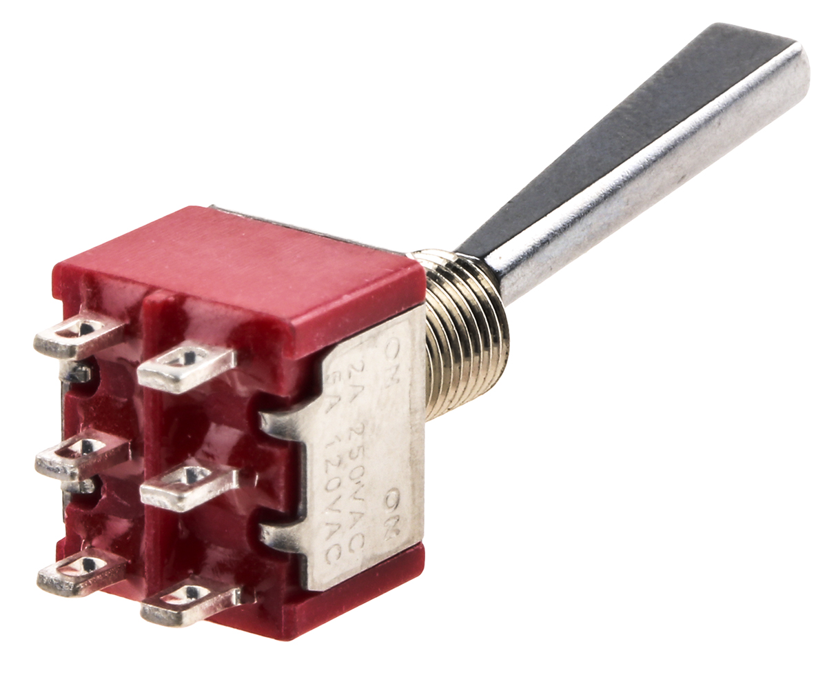 This is DPDT Toggle Switch On-On Panel Mount manufactured by RS Pro. The manufacturer part number is 394-453. It features a 0.01ω contact resistance. The actuator is a 21mm long. The product complies with all safety standards, such as rohs & lead free. The product is available in panel mount configuration. Moreover, the product has a nominal 28v dc voltage rating. The rated contact current is 5 a @ 28 v dc. The panel has a 6.35mm cut-out diameter. The contact is equipped with dpdt configuration. The panel cut out size includes 6.35mm. The actuator is designed from sturdy chromium plated brass material. The product has -30 → +85°c of operating temperature range. Whereas, the minimum operating temperature of the product is -30°c. The product also provide mechanical stability with 40000operations. It provides on-on switch operation. It has a maximum operating temperature of +85°c. The terminal is a solder type. The product is made from sturdy silver materials.