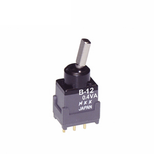 This is Toggle SW SPDT0.4VA max manufactured by NKK Switches. The manufacturer part number is B12HB. It features a 50mω contact resistance. The actuator is a 6.3mm long. Illumination Option no. The product is available in pcb configuration. Moreover, the product has a nominal 28v ac/dc voltage rating. The rated contact current is 0.4va. It is IP rated with ip65. The actuator is designed from sturdy nickel plated brass material. Whereas, the minimum operating temperature of the product is -30°c. The contact is equipped with spdt configuration. The product has -30 → +85°c of operating temperature range. It provides on-(on) switch operation. It has a maximum operating temperature of +85°c. The terminal is a through hole type. The product is made from sturdy copper alloy (stationary), phosphor bronze (movable) materials.