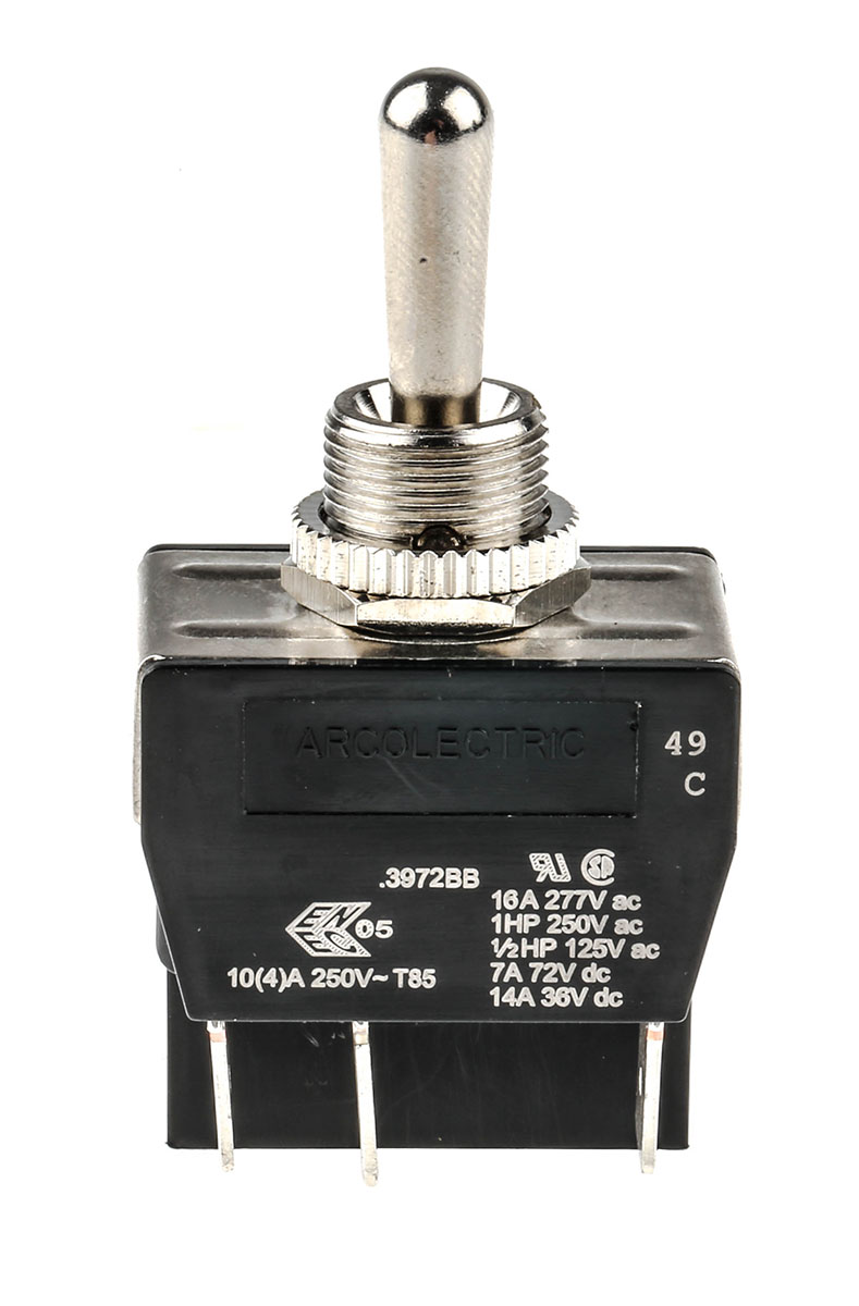 Upgrade your control systems with the C3972BBAAA Toggle Switch by Arcolectric (Bulgin) Ltd, a dependable and versatile solution for demanding electrical and electronic applications. Designed with a robust DPDT (Double Pole Double Throw) configuration, this switch supports a momentary (On)-Off-(On) action, offering flexible circuit control for dual switching needs. Moreover, engineered for durability and ease of use, the C3972BBAAA features tab terminals for secure connections and quick installation. Its panel mount design ensures a firm and flush fit in control panels.