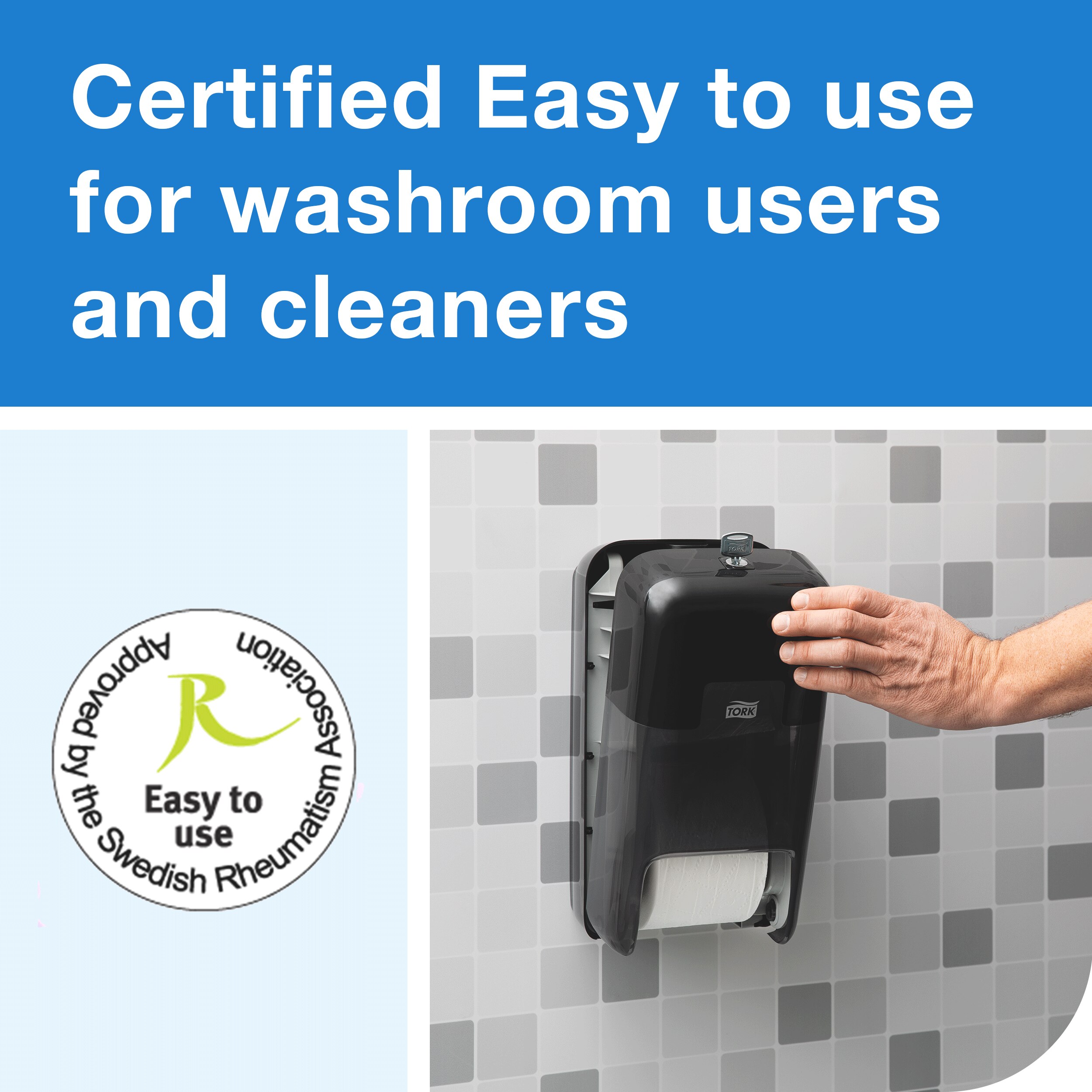 This is Black ABS Toilet Roll Dispenser 174mm x 323mm x 171mm manufactured by Tork. The manufacturer part number is 558042. It is dual . It has a decent black colour. The product is made from highly stable and reliable abs. In addition, the height is 323mm. Furthermore, the product is 171mm wide. The product comes in 174mm depth.