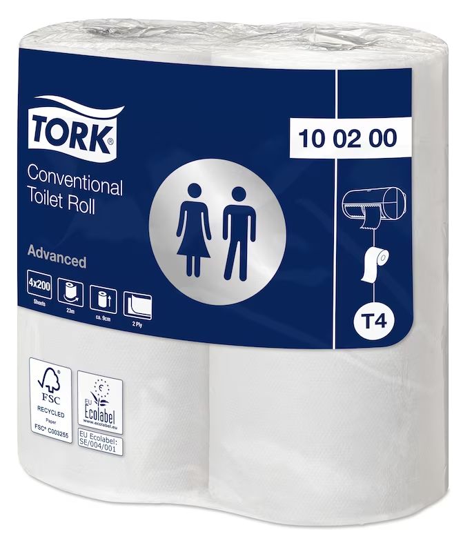 This is 36 Packs of 200 Sheets 2 ply manufactured by Tork. The manufacturer part number is 100200. Better World Verification Options - eu ecolabel, fsc certified. Is it a better world product? yes. It has 2 ply . It includes 200 sheets . It contains 36 rolls . It features conventional advanced range. Additionally, it has a roll diameter about 110mm . With conventional roll size . While the core is 44mm in diameter. It has a decent white colour.