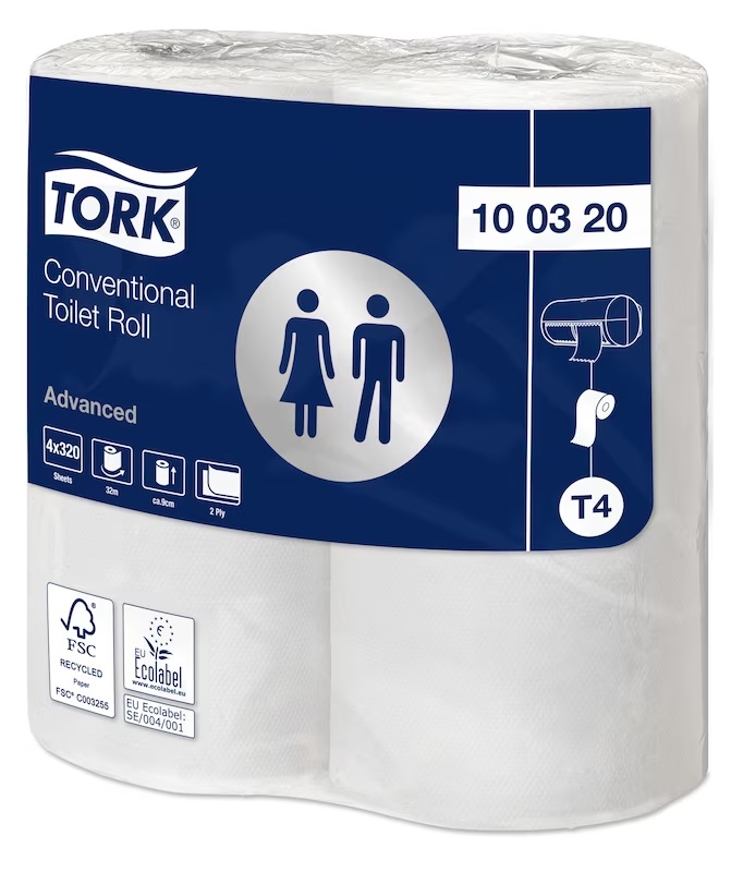 This is 36 Packs of 320 Sheets 2 ply manufactured by Tork. The manufacturer part number is 100320. Better World Verification Options - eu ecolabel, fsc certified. Is it a better world product? yes. It has a decent white colour. 3.2m are the Metres Per Case . It includes 320 sheets . It contains 36 rolls . It features conventional advanced range. Additionally, it has a roll diameter about 110mm . With conventional roll size . While the core is 44mm in diameter. It has 2 ply .