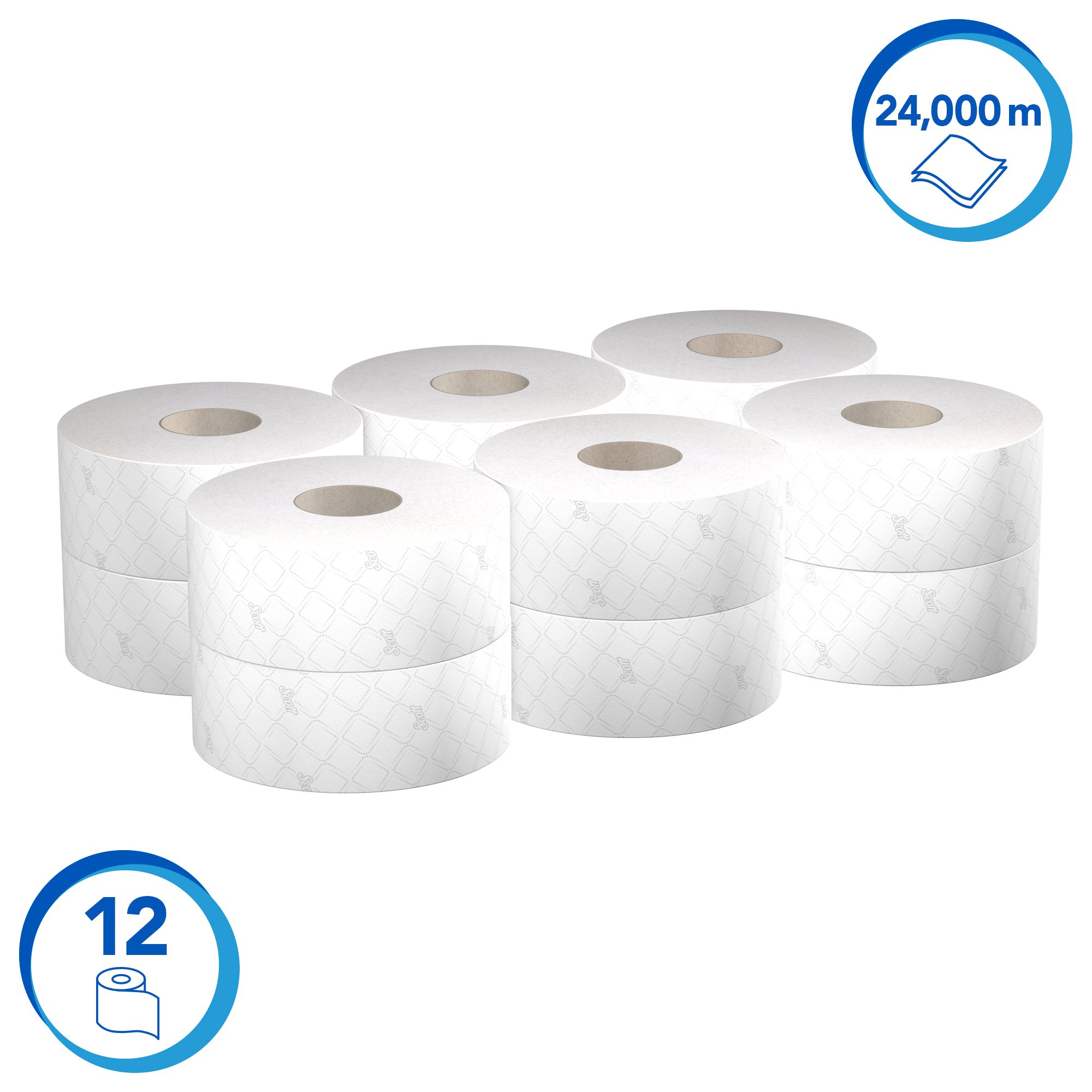 This is 12 rolls of 6000 Sheets Toilet Roll 2 ply manufactured by Hostess. The manufacturer part number is 8614. Better World Verification Options - eu ecolabel, fsc certified. Is it a better world product? yes. It has a decent white colour. 24000m are the Metres Per Case . The product's Base Weight is about 32g/m² It includes 6000 sheets . It contains 12 rolls . It features scott essential jumbo range. Additionally, it has a roll diameter about 198mm . With jumbo roll size . While the core is 76mm in diameter. It has 2 ply .