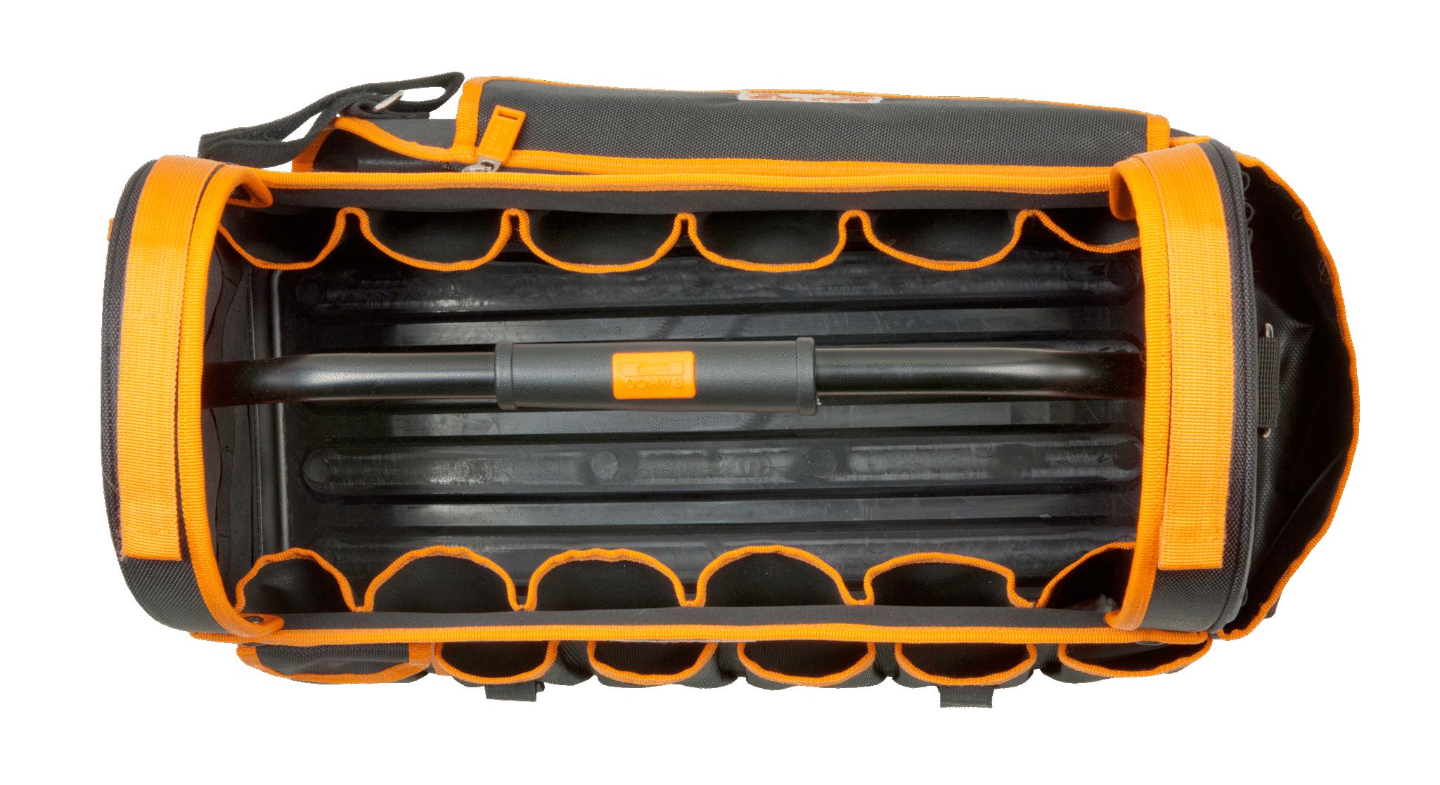 This is Zipper Polyester Tool Bag manufactured by Bahco. The manufacturer part number is 4750FB1-19A. The product is made from highly stable and reliable polyester. It includes a hard bottom bag type bag . In addition, the height is 355mm. Furthermore, the product is 230mm wide. Its accurate length is 470mm. Additionally, it has a/an zipper type lock . It has a shoulder strap included yes .