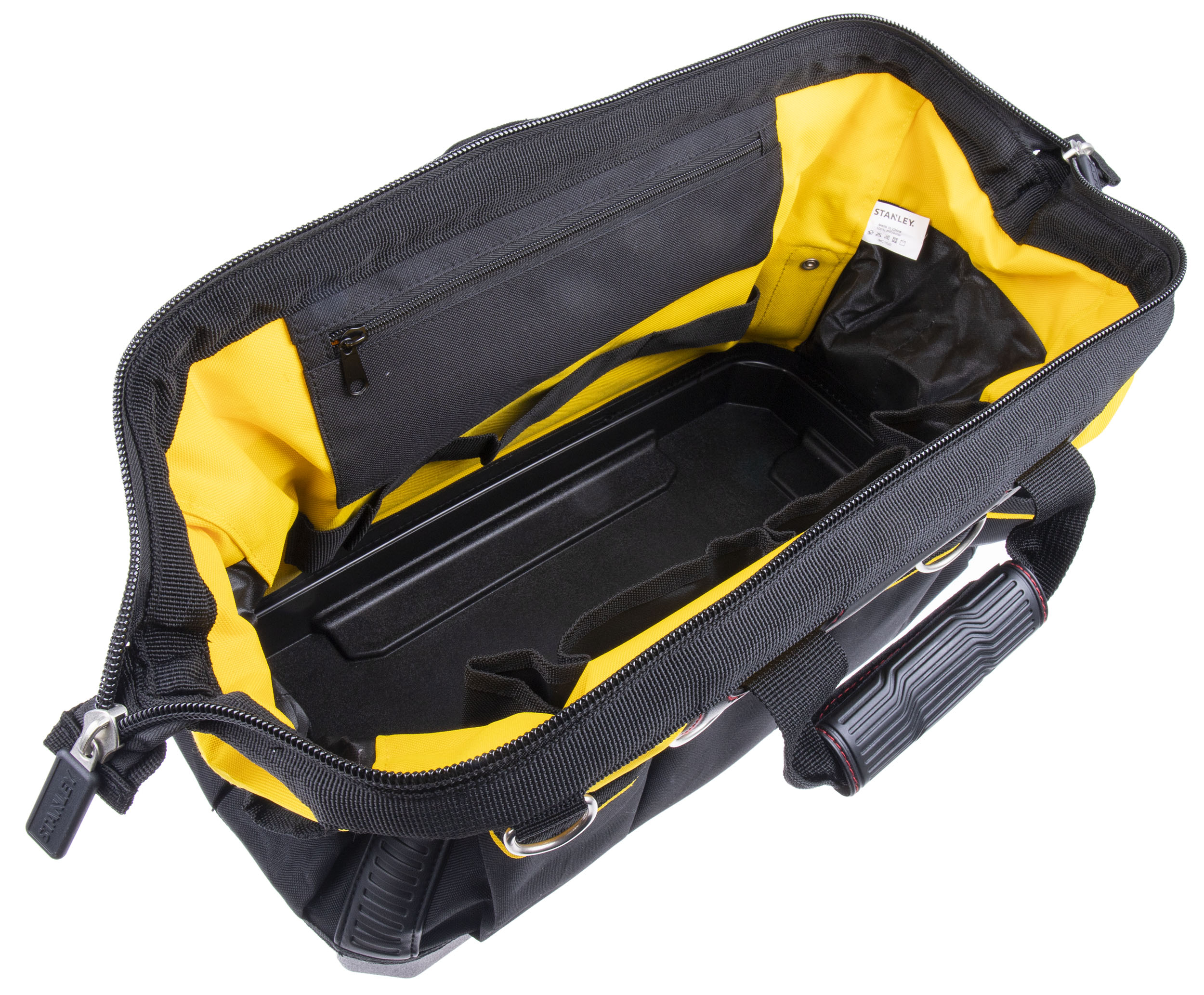 This is 600 Denier Fabric Leather Holdall with Shoulder Strap manufactured by Stanley FatMax. The manufacturer part number is 1-93-950. It has a decent black, yellow colour. The product is made from highly stable and reliable fabric. It includes a holdall type bag . In addition, the height is 230mm. Furthermore, the product is 280 mm wide. Its accurate length is 460mm. Additionally, it has a/an zipper type lock . tool bag is a versatile product designed to provide user-defined applications. It has a shoulder strap included yes .