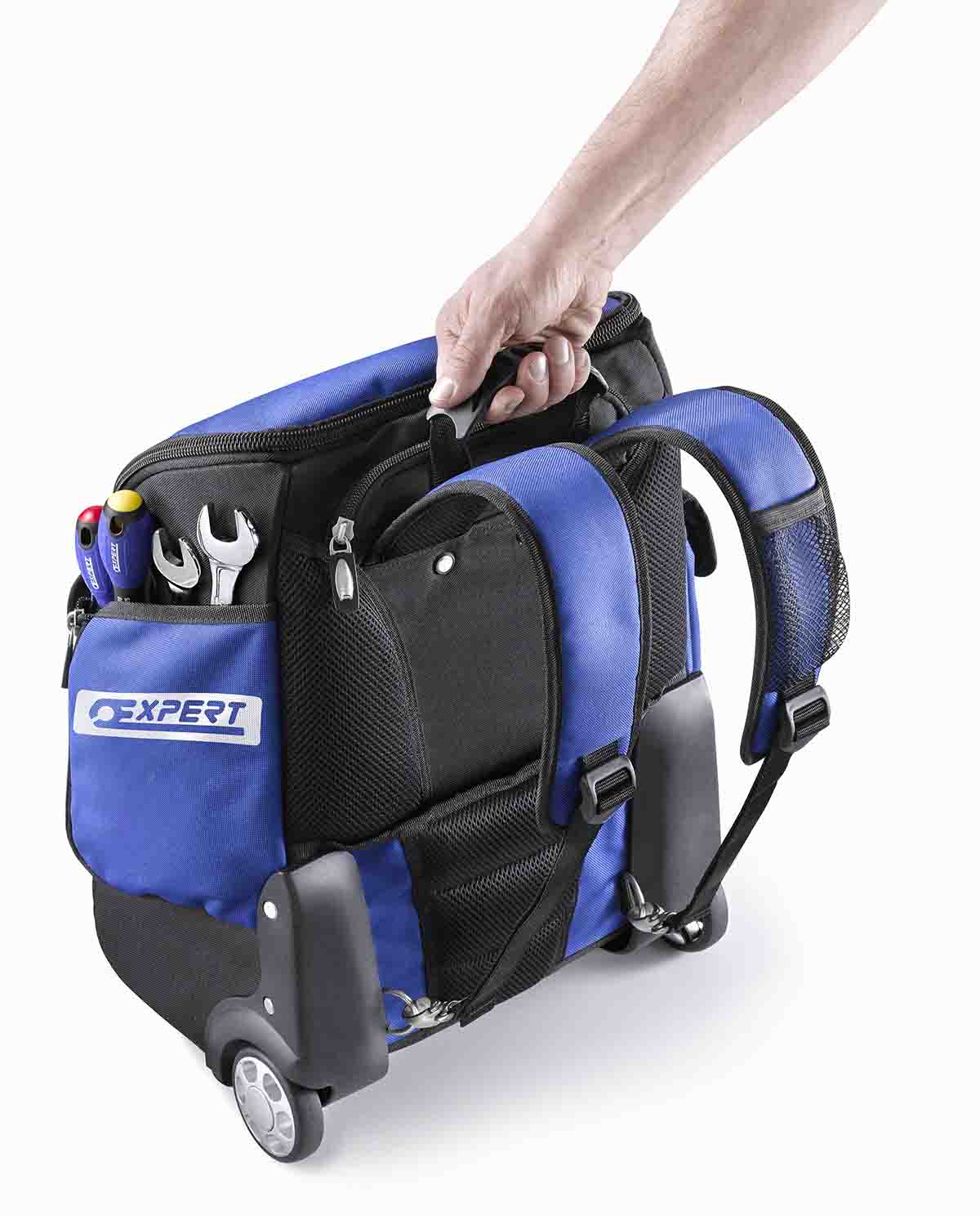 This is BACKPACK ON WHEELS manufactured by Expert by Facom. The manufacturer part number is E010602. The product is made from highly stable and reliable fabric. It includes a wheeled bag type bag . In addition, the height is 470mm. Furthermore, the product is 218mm wide. Its accurate length is 338mm. It has a shoulder strap included yes .