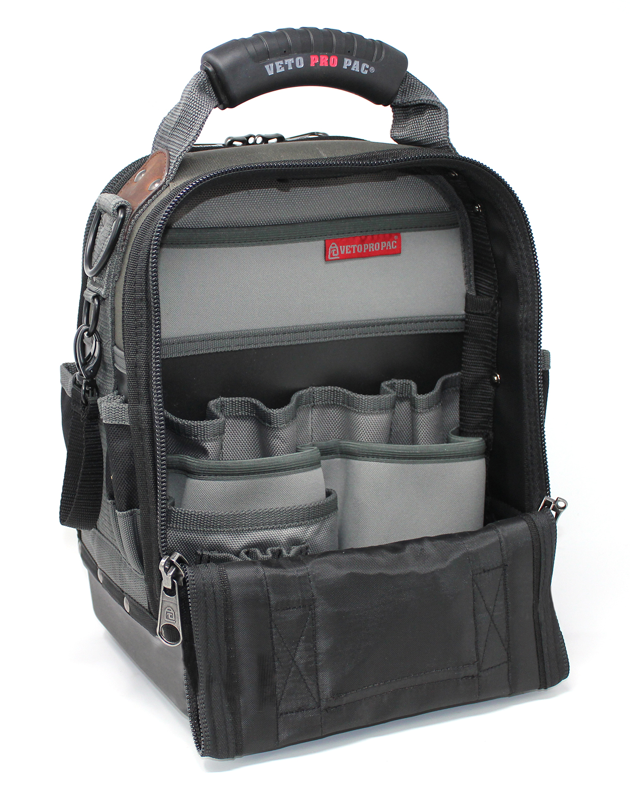 This is Nylon Tool Bag with Shoulder Strap 8.5in x 12in x 14in manufactured by Veto Pro Pac. The manufacturer part number is AX3513. The product is made from highly stable and reliable nylon. It includes a tool bag type bag . In addition, the height is 14in. Furthermore, the product is 12in wide. Its accurate length is 8.5in. It has a shoulder strap included yes .