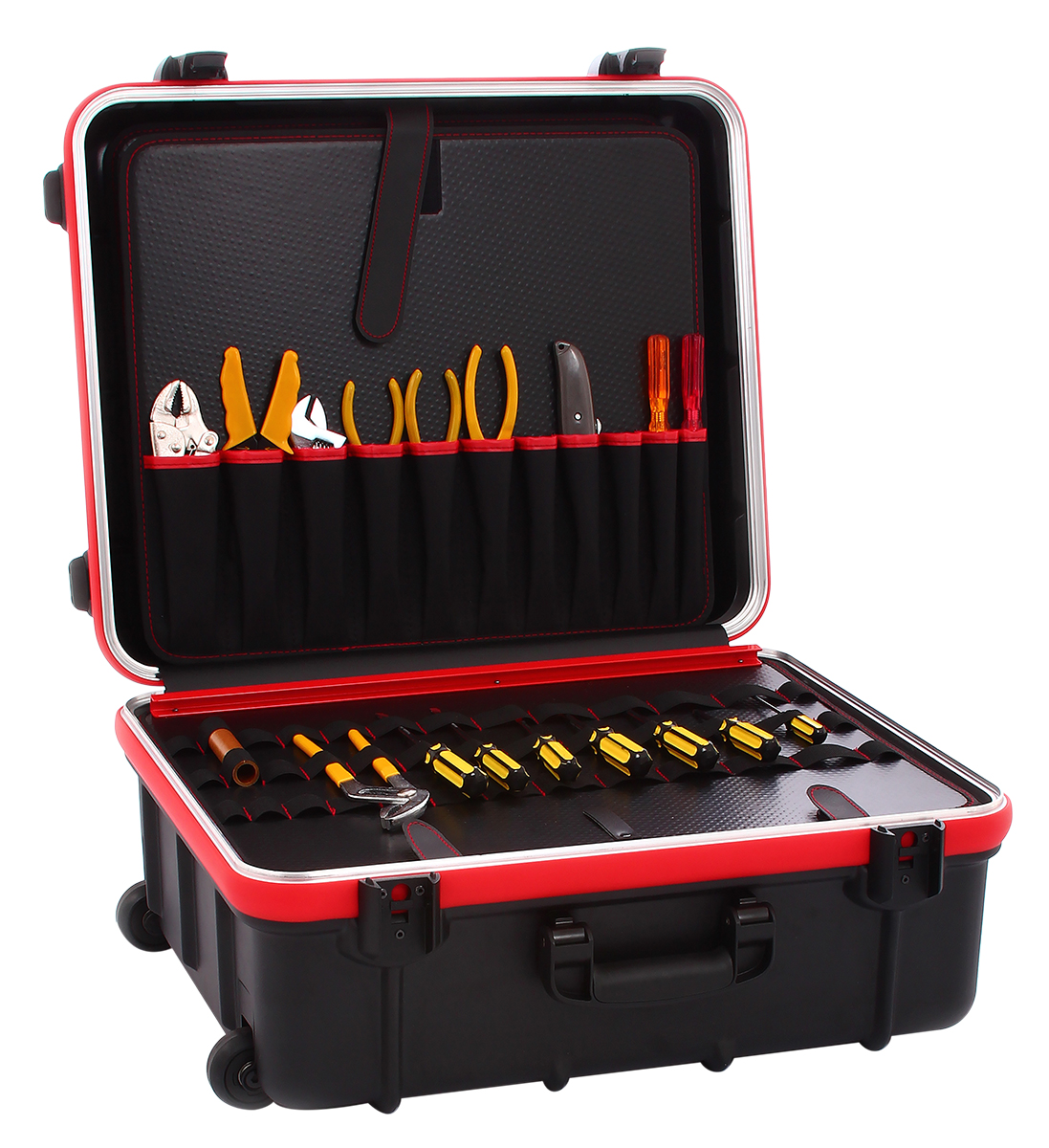 This is ABS Tool Case with 2 Tool Boards manufactured by RS Pro. The manufacturer part number is 921-2707. The given dimensions of the product include 560 x 460 x 195mm. The typical product's weight is 10.0kg. It has a tool case type box . It has a decent black colour. The product is made from highly stable and reliable plastic. In addition, the height is 195mm. Furthermore, the product is 460mm wide. Its accurate length is 560mm. Included wheels 2 wheels .