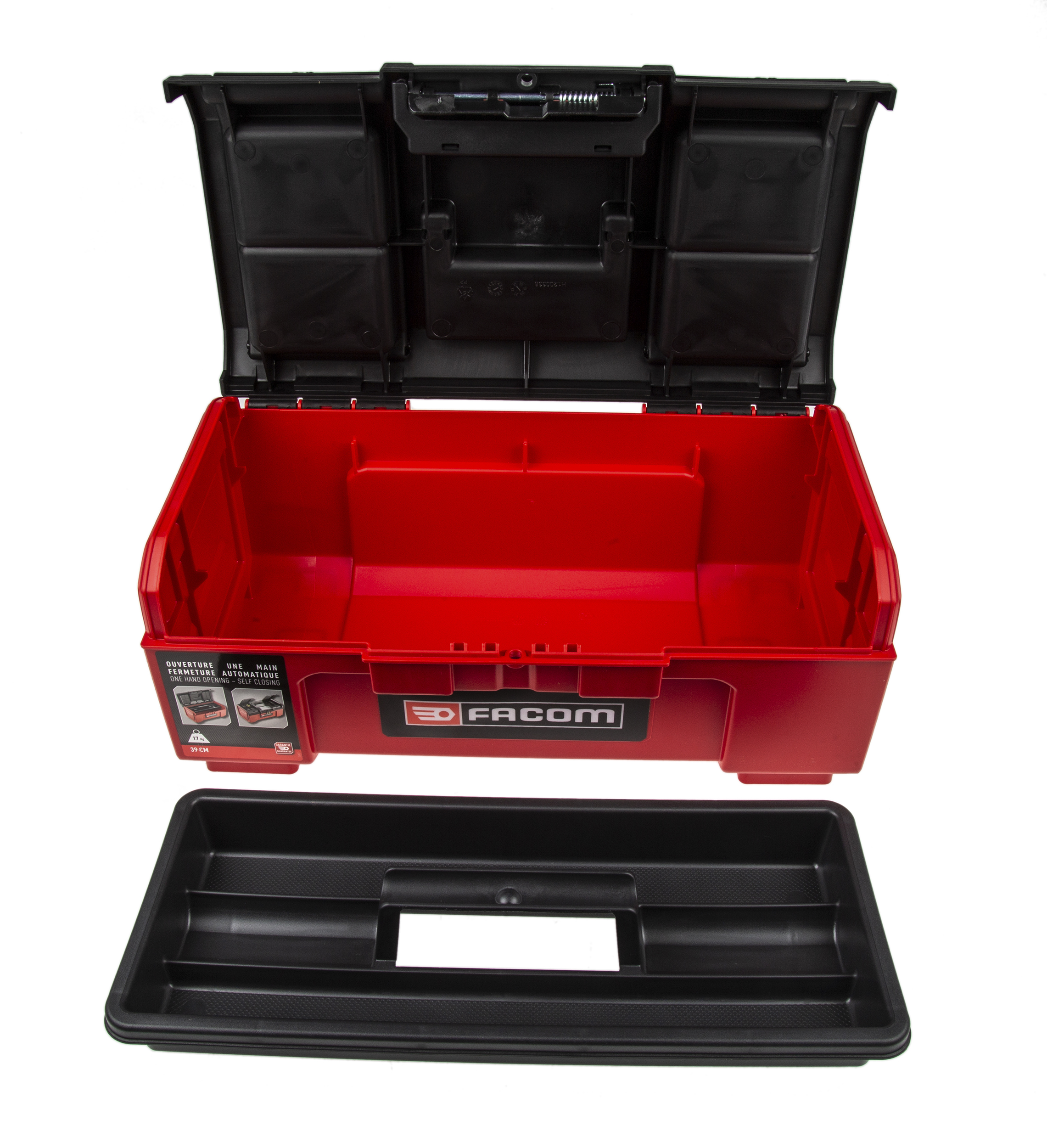 The Facom BP.C16NPB is a one-touch plastic toolbox that is designed for efficiency and durability. This toolbox is relatively compact with dimensions of 391mm in length, 164mm in width, and 222mm in height, making it an ideal choice for both professional and home use.