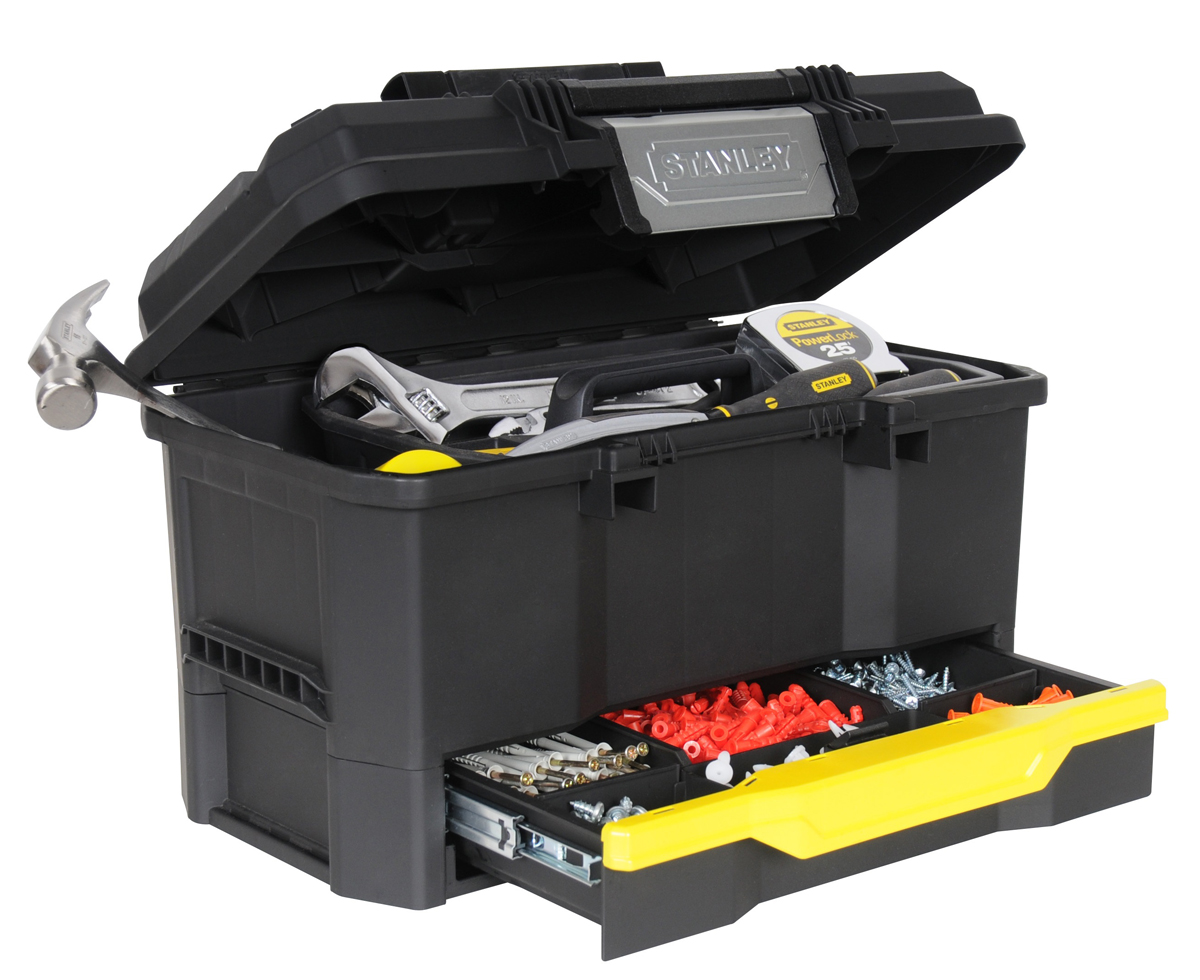 This is One Touch Tool Box Removable 1 drawer dimensions 481 x 279 x 287mm manufactured by Stanley. The manufacturer part number is 1-70-316. The given dimensions of the product include 481 x 279 x 481mm. It has a tool box type box . It has a decent black colour. Its accurate length is 481mm. In addition, the height is 481mm. Furthermore, the product is 279mm wide. It features one touch range. Additionally, it has a/an padlock type lock . The product has other tools included no . With a/an removable type tray . It includes 1 high-quality drawers .