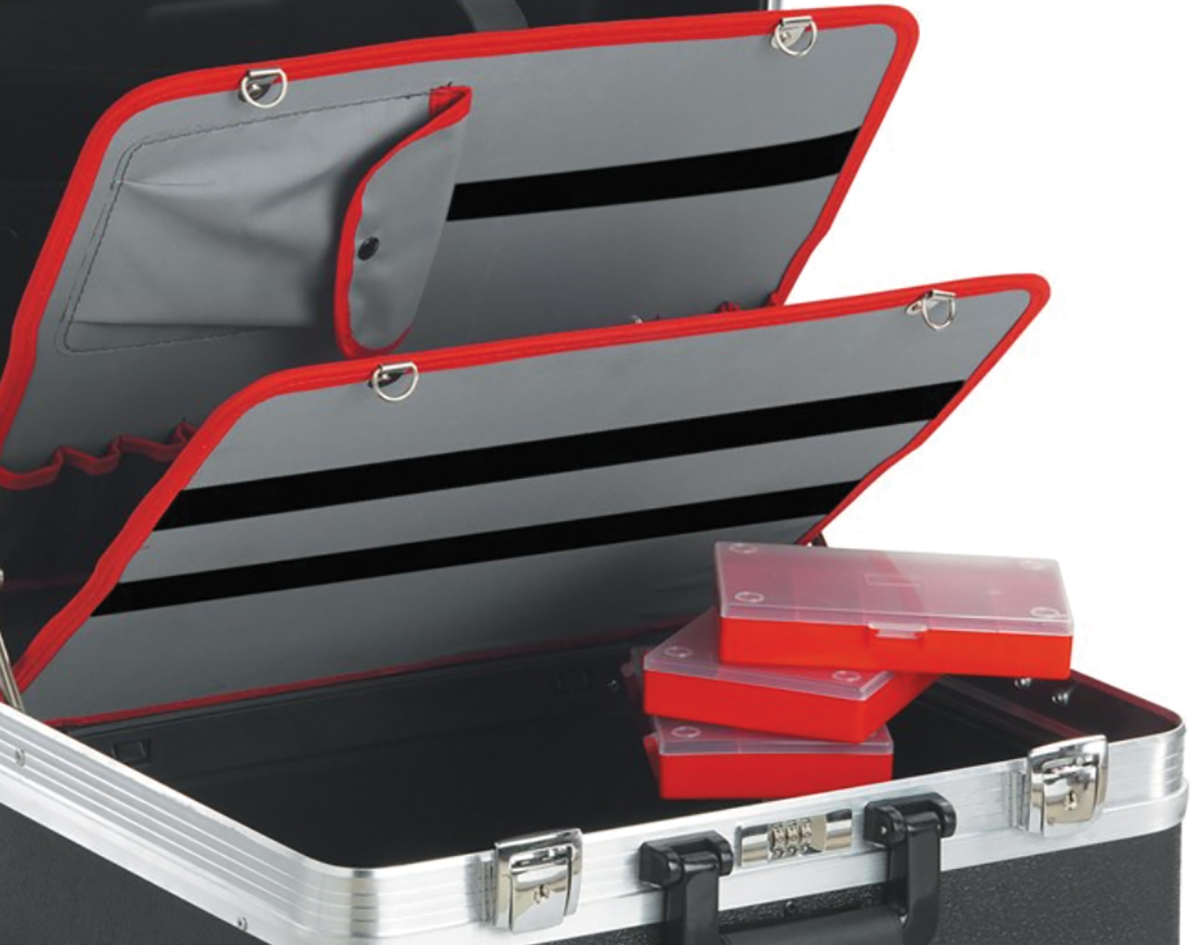This is Plastic Tool Case manufactured by Facom. The manufacturer part number is BV.61A. It has about 3 compartments . Its sub type is tool case . The typical product's weight is 8.5kg. It has a decent black colour. The product is made from highly stable and reliable high density polyethylene. In addition, the height is 365mm. Furthermore, the product is 440 mm wide. Its accurate length is 550mm. Additionally, it has a/an key type lock . With a/an movable type tray . tool case is a versatile product designed to provide user-defined applications. It is wheeled yes .
