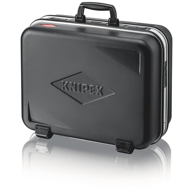 This is Tool Case manufactured by Knipex. The manufacturer part number is 00 21 42 LE. The given dimensions of the product include 520 x 435 x 250mm. The typical product's weight is 7.55kg. It has a tool case type box . It has a decent black colour. The product is made from highly stable and reliable abs, aluminium. Its accurate length is 435mm. In addition, the height is 250mm. Furthermore, the product is 520mm wide. It features big twin range. Additionally, it has a/an combination, key type lock . The product has other tools included no . With a/an general purpose type tray .