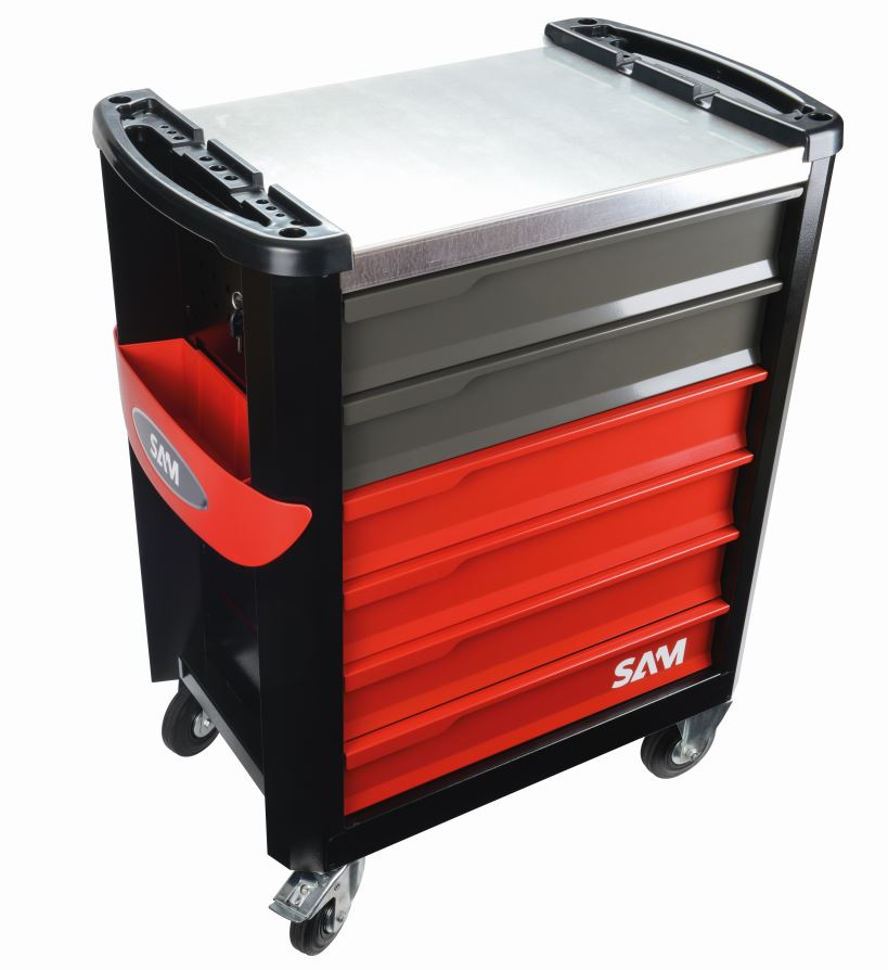 This is 7 drawer Galvanised Steel Wheeled Tool Trolley 1m x 834mm x 600mm manufactured by SAM. The manufacturer part number is SERVI-630N. The product is made from highly stable and reliable galvanised steel. The product includes tool trolley type tool storage . In addition, the height is 1m. Furthermore, the product is 834mm wide. Its accurate length is 600mm. It includes 6 high-quality drawers . It is wheeled yes .