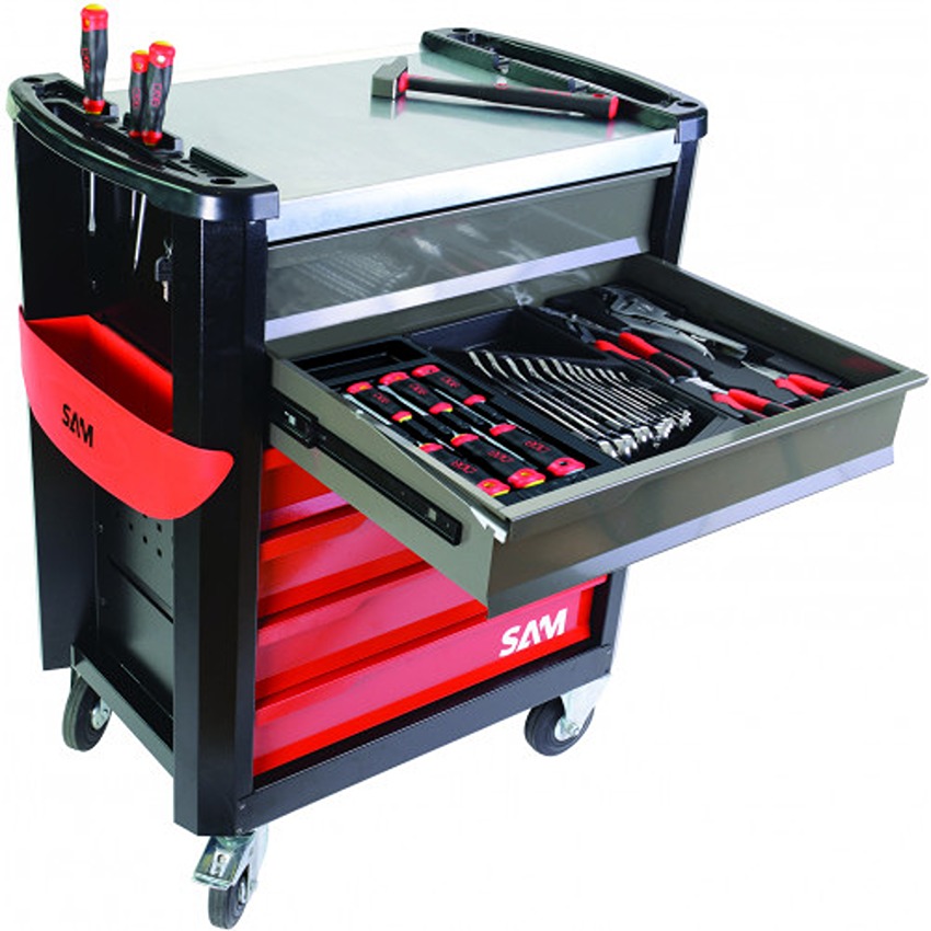 This is 6 Drawer ABS Wheeled Tool Trolley manufactured by SAM. The manufacturer part number is CPP-65MS. The product is made from highly stable and reliable abs. The product includes tool trolley type tool storage . In addition, the height is 1.1m. Furthermore, the product is 800mm wide. Its accurate length is 600mm. It includes 6 high-quality drawers . It is wheeled yes .