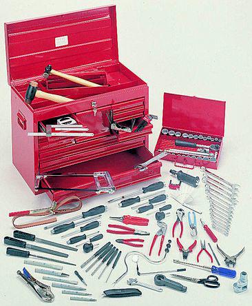 This is 117 Pieces Automotive Tool Kit manufactured by RS Pro. The manufacturer part number is 575-532. This is a type of automotive, a set with user-desired tools. Moreover, it has scissors: 8 in; utility plier: 9 1/2 in; steel rule: 1/2 in; phillips screwdriver: ph1 x 75; ph x 100; ph3 x 150; ph4 x 200; ph2 x 35; ph0x75 mm; flat screwdriver: 5 x 75; 6 x 100; 9 x 150; 9.5 x 20; 6 x 35; 3 x 75 mm; pin punch set: 3.2; 4.8; 6.4; 7.9; 9 set contents . The product consists of 117 pieces.
