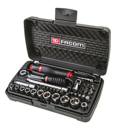 This is 37 Pieces Mechanical Tool Kit manufactured by Facom. The manufacturer part number is R.2A. This is a type of mechanical, a set with user-desired tools. Moreover, it has 1/4 in square drive ratchet (72 tooth); hexagon head: 5; 5; 6; 7; 8; 9; 10; 11; 12; 13; 14 mm; 1/4 in spinner handle; extension bars: 55; 100 mm; universal joint; bit holder; resistorx: t10; t15; t20; t25; t27; t30; t40; hexagon: 3; 4; 5; 6; 7 mm; pozidriv: pz1; pz2; pz3; phillips: ph1; ph2; ph3; slotted: 4; 5; 6; 5; 8 mm set contents . The product consists of 37 pieces.