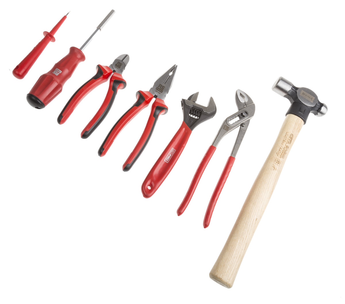 This is 13 Piece Maintenance Tool Kit manufactured by RS Pro. The manufacturer part number is 136-3406. VDE/1000V Approval Options - no. It has a roll type storage . This versatile kit contents include diagonal cutter: 160 mm, combination pliers: 200 mm, ball pein hammer: 16 oz., water pump pliers (box joint/pvc): 250 mm, single-pole voltage tester, tool roll, adjustable wrench (phosphate/pvc): 250 mm, 6 in 1 bit driver set components. This is a type of maintenance, a set with user-desired tools. tool kit is a versatile product designed to provide user-defined applications. The product consists of 13 pieces.