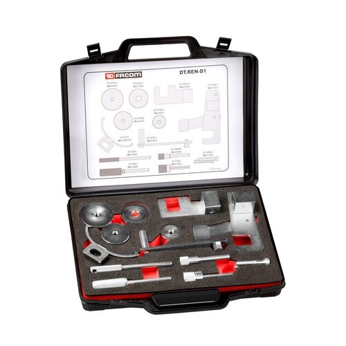This is 13 Piece Automotive Tool Kit Tool Kit with Case manufactured by Facom. The manufacturer part number is DT.REN-D1. It has a plastic case type storage . This versatile kit contents include timing belt components. This is a type of automotive, a set with user-desired tools. tool kit is a versatile product designed to provide user-defined applications. The product consists of 13 pieces.