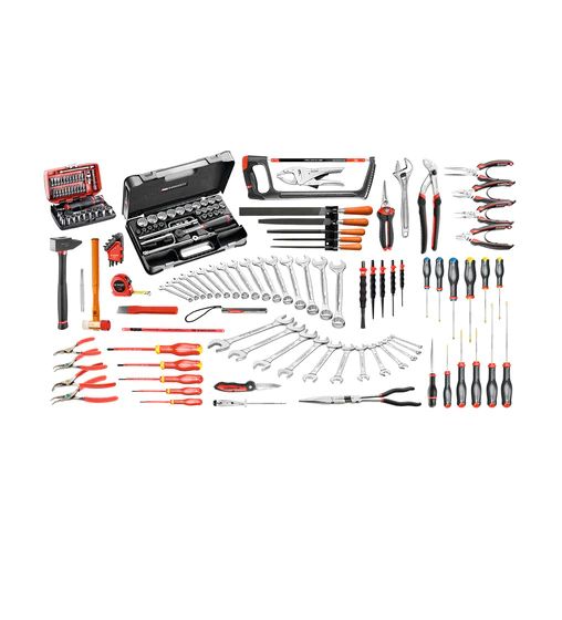 This is 165 Piece Mechanical Tool Kit with Case manufactured by Facom. The manufacturer part number is JET6.M130A. This is a type of mechanical, a set with user-desired tools. Moreover, it has drawer chest, drawer roller cabinet, foam trays set contents . The product consists of 165 pieces.
