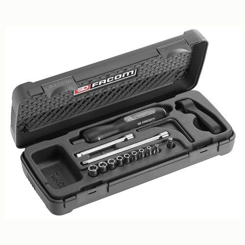 This is 146 Piece Torque Screwdriver Sets Tool Kit with Case manufactured by Facom. The manufacturer part number is A.404J1. This is a type of torque screwdriver sets, a set with user-desired tools. Moreover, it has adjustment key, extension, ratchet handle, screwdriver set contents . It has a case type storage .