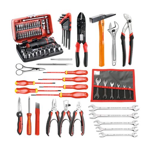 This is 39 Piece Electronics Tool Kit with Case manufactured by Facom. The manufacturer part number is CM.E16. This is a type of electricians, a set with user-desired tools. Moreover, it has metric tools set contents . The product consists of 39 pieces.