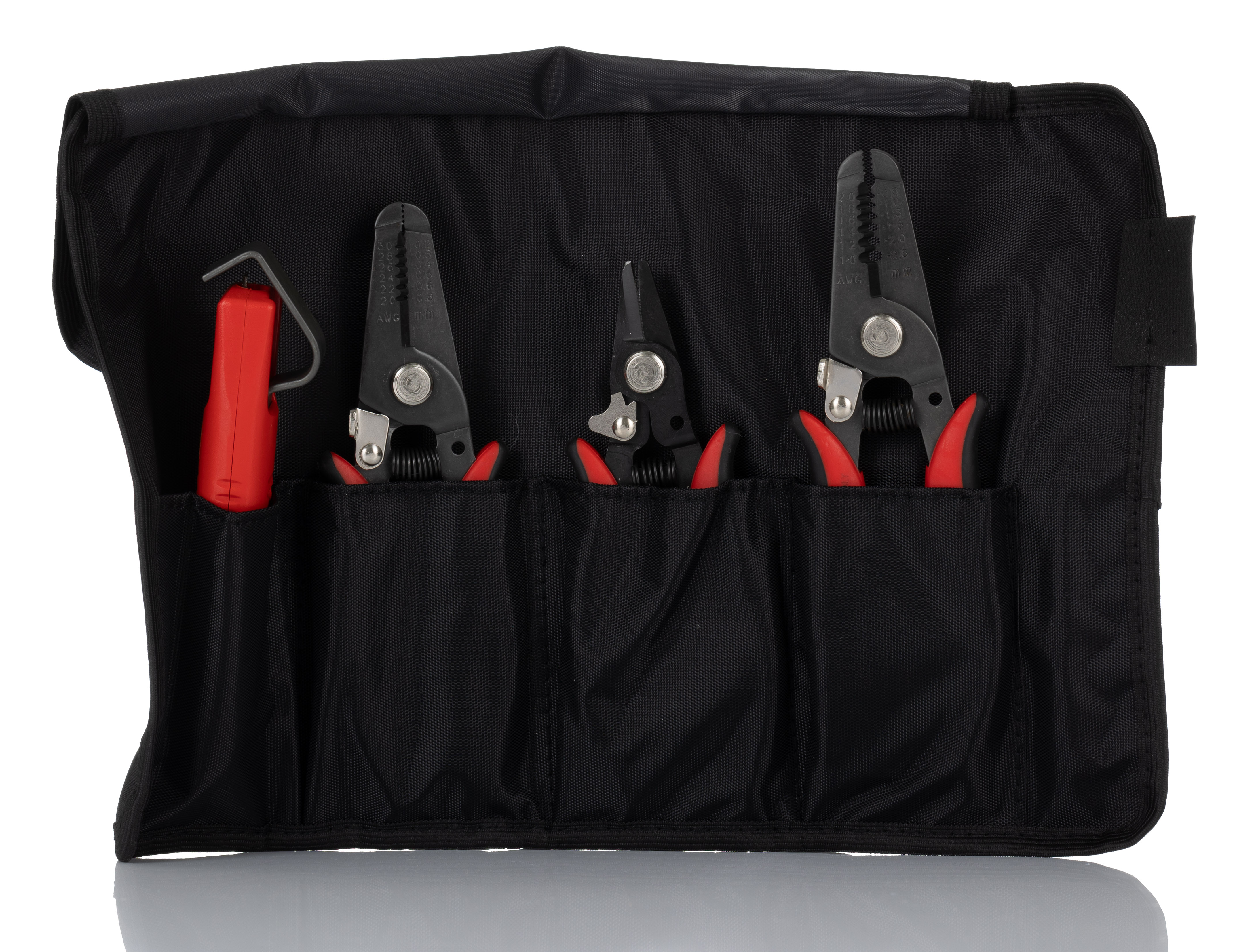 This is 4 Piece Electricians Tool Kit with Roll manufactured by RS PRO. The manufacturer part number is 249-8652. VDE/1000V Approval Options - no. It has a roll type storage . This is a type of electricians, a set with user-desired tools. Moreover, it has 3 x shears, 1 x wire stripper set contents . The product consists of 4 pieces.