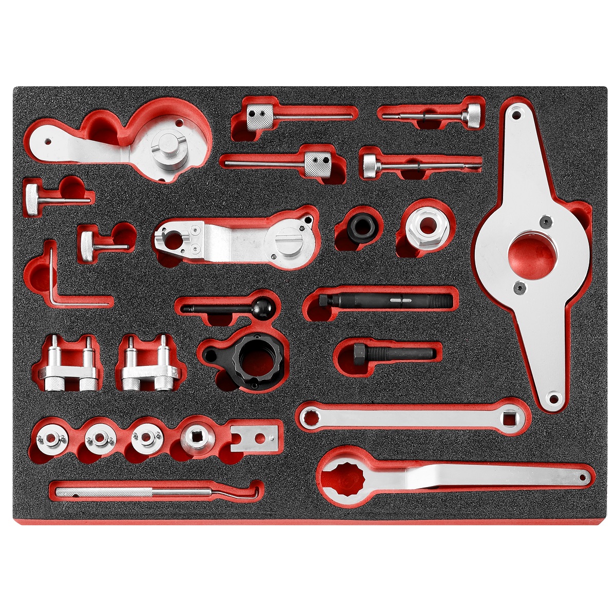 This is 26 Piece Timing Tool Kit Tool Kit with Foam Inlay manufactured by Facom. The manufacturer part number is DT.MODVWPF. This is a type of timing tool kit, a set with user-desired tools. VDE/1000V Approval Options - no. Moreover, it has timing tools set contents . It has a foam inlay type storage . The product consists of 26 pieces.
