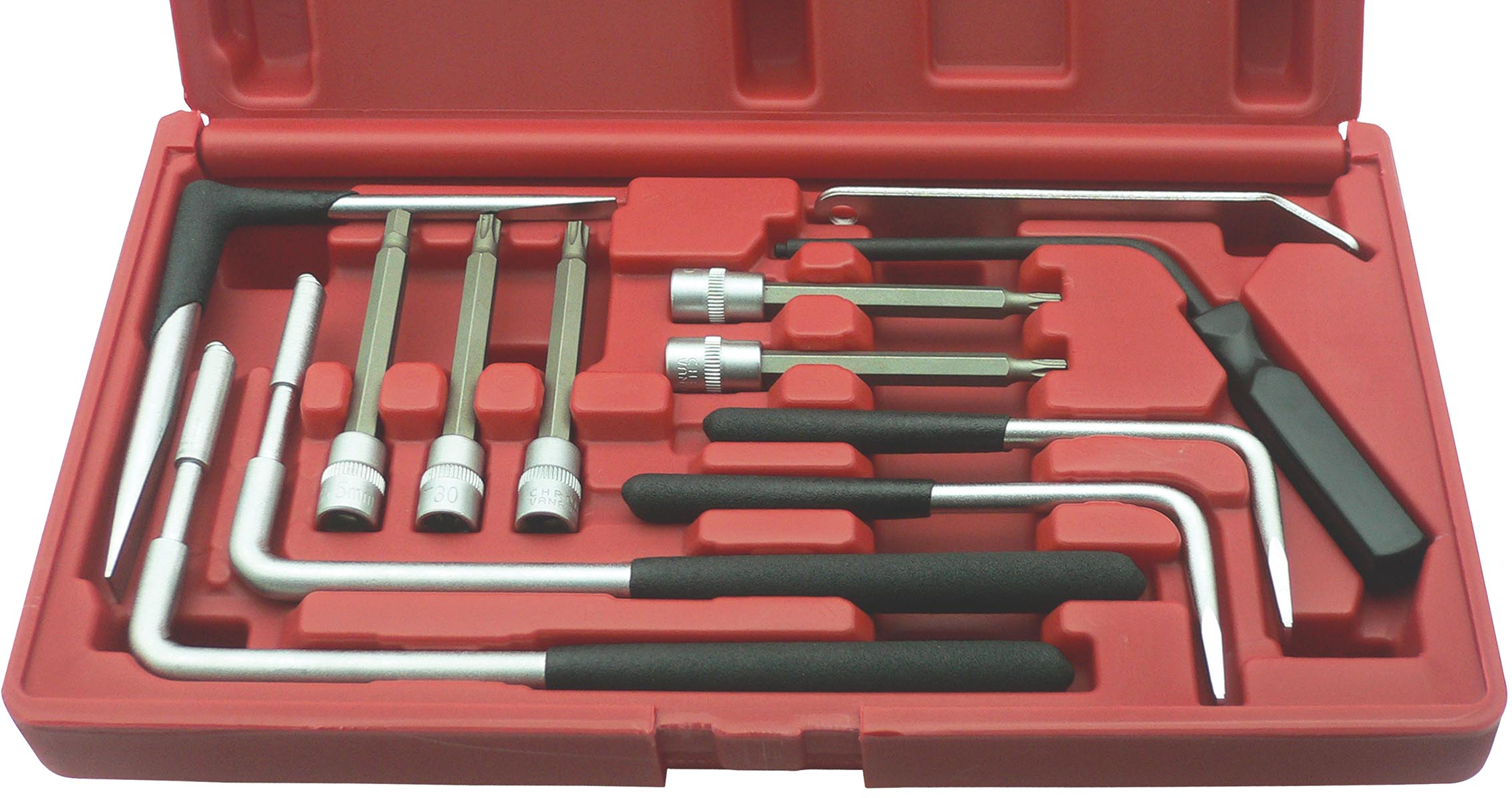 This is 11 Piece Air Bag Removal Tool Tool Kit with Box manufactured by SAM. The manufacturer part number is CMA-A. This is a type of air bag removal tool, a set with user-desired tools. Moreover, it has 1/4 inch torx socket, 1/4 inch torx socket drilled, 2 airbag housing access tools, 3 vw airbag levers, special vag airbag tools set contents . It has a box type storage . The product consists of 11 pieces.