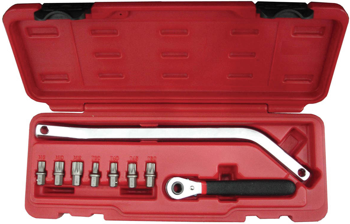This is 7 Piece Door Hinge Removal set Tool Kit with Case manufactured by SAM. The manufacturer part number is 99-PA20. This is a type of door hinge removal set, a set with user-desired tools. Moreover, it has 1/4" bit-holder ratchet wrench, bits with xzn imprints, torx imprints set contents . It has a case type storage . The product consists of 7 pieces.