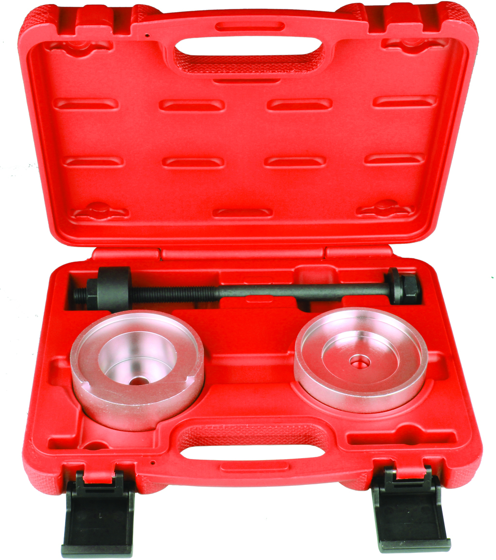 This is 6 Piece Rear Bushing Removal and Installation Kit Tool Kit with Box manufactured by SAM. The manufacturer part number is 76-VAG-AR. This is a type of rear bushing removal and installation kit, a set with user-desired tools. Moreover, it has pressure flanges, threaded rods, tightening nuts set contents . It has a box type storage . The product consists of 6 pieces.