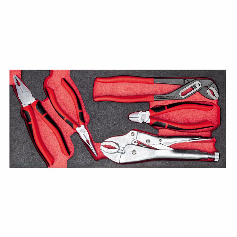 This is 5 Piece Automotive Tool Kit Tool Kit with Tray manufactured by Usag. The manufacturer part number is U05191070. This is a type of automotive tool kit, a set with user-desired tools. Moreover, it has 133 ag - half-round extra-long nose pliers with straight jaws, 134 - lock-grip pliers with concave jaws, 150 ag - combination pliers, 180 c - box-joint adjustable pliers, 188 ag - heavy-duty diagonal cutting nippers, 519/150aexv - plastic tray (empty) set contents . It has a tray type storage . It has a model number u05191070. The product consists of 5 pieces.