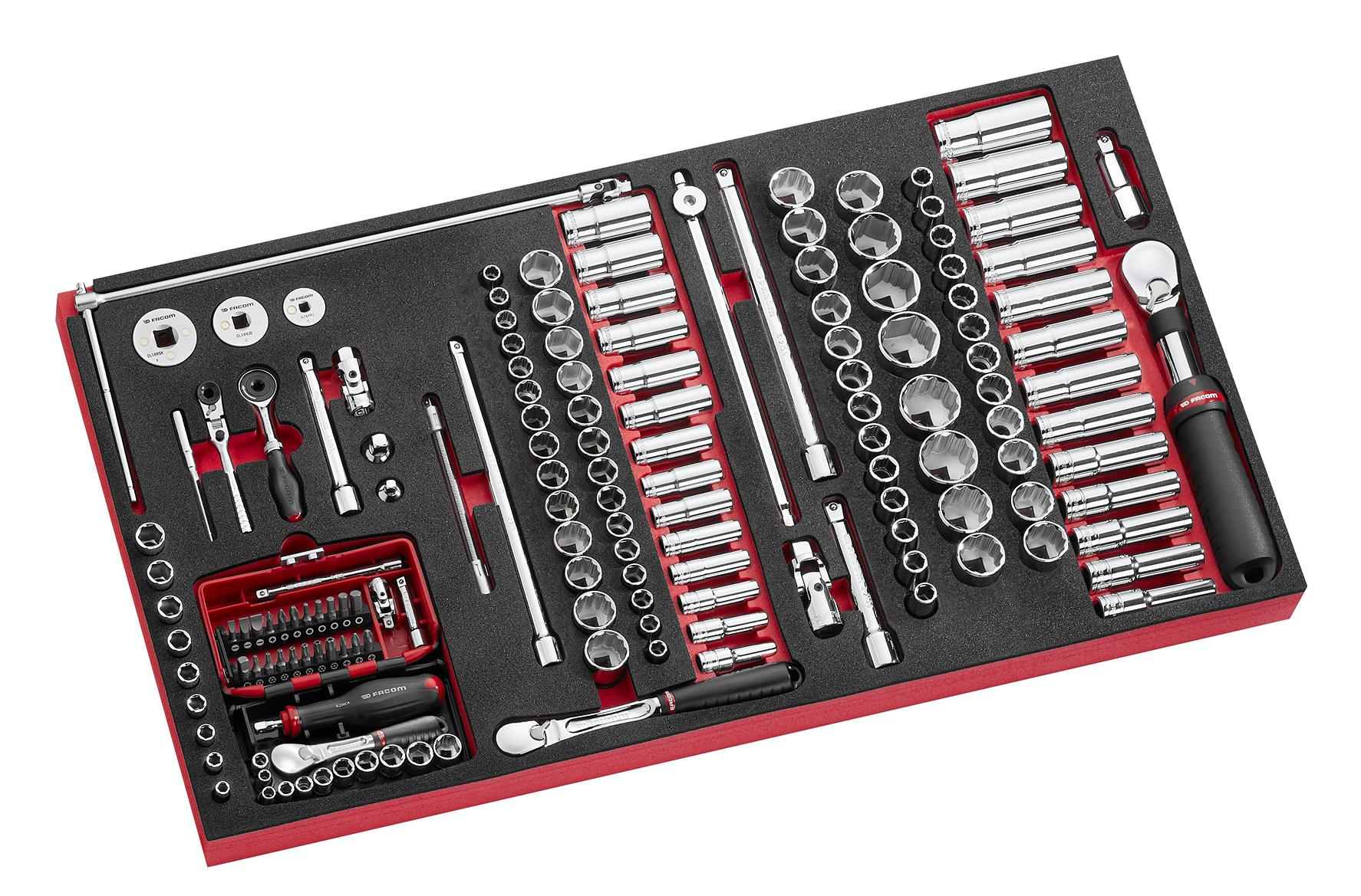This is Automotive Tool Kit with Box manufactured by Facom. The manufacturer part number is MODM.XXL1GRPPF. This is a type of automotive, a set with user-desired tools. tool kit is a versatile product designed to provide user-defined applications. It has a box type storage . This versatile kit contents include socket components.