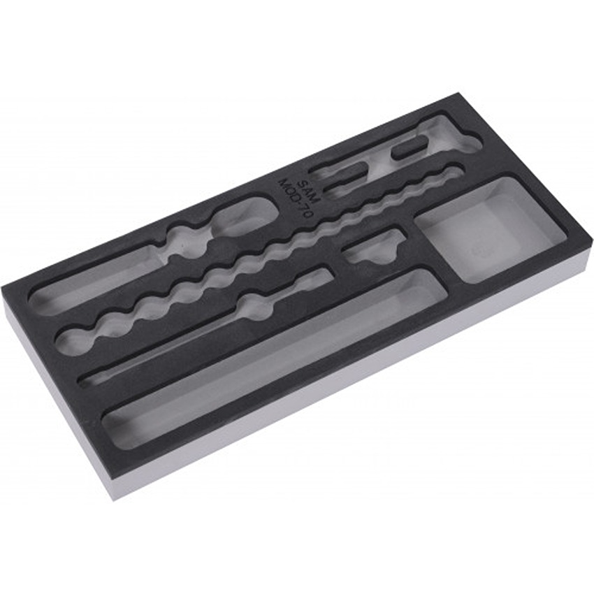 This is Foam Tool Rack manufactured by SAM. The manufacturer part number is MOD-70. Moreover, it has socket set contents . The product is made from highly stable and reliable foam. It comes in tool rack configuration. The product includes tool rack type tool storage .