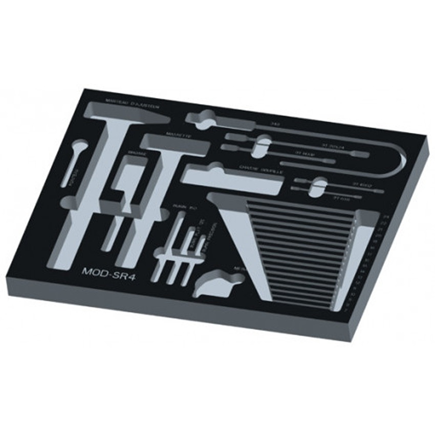 This is Foam Tool Rack manufactured by SAM. The manufacturer part number is MOD-SR-4. Moreover, it has service tools set contents . The product is made from highly stable and reliable foam. It comes in tool rack configuration. The product includes tool rack type tool storage .