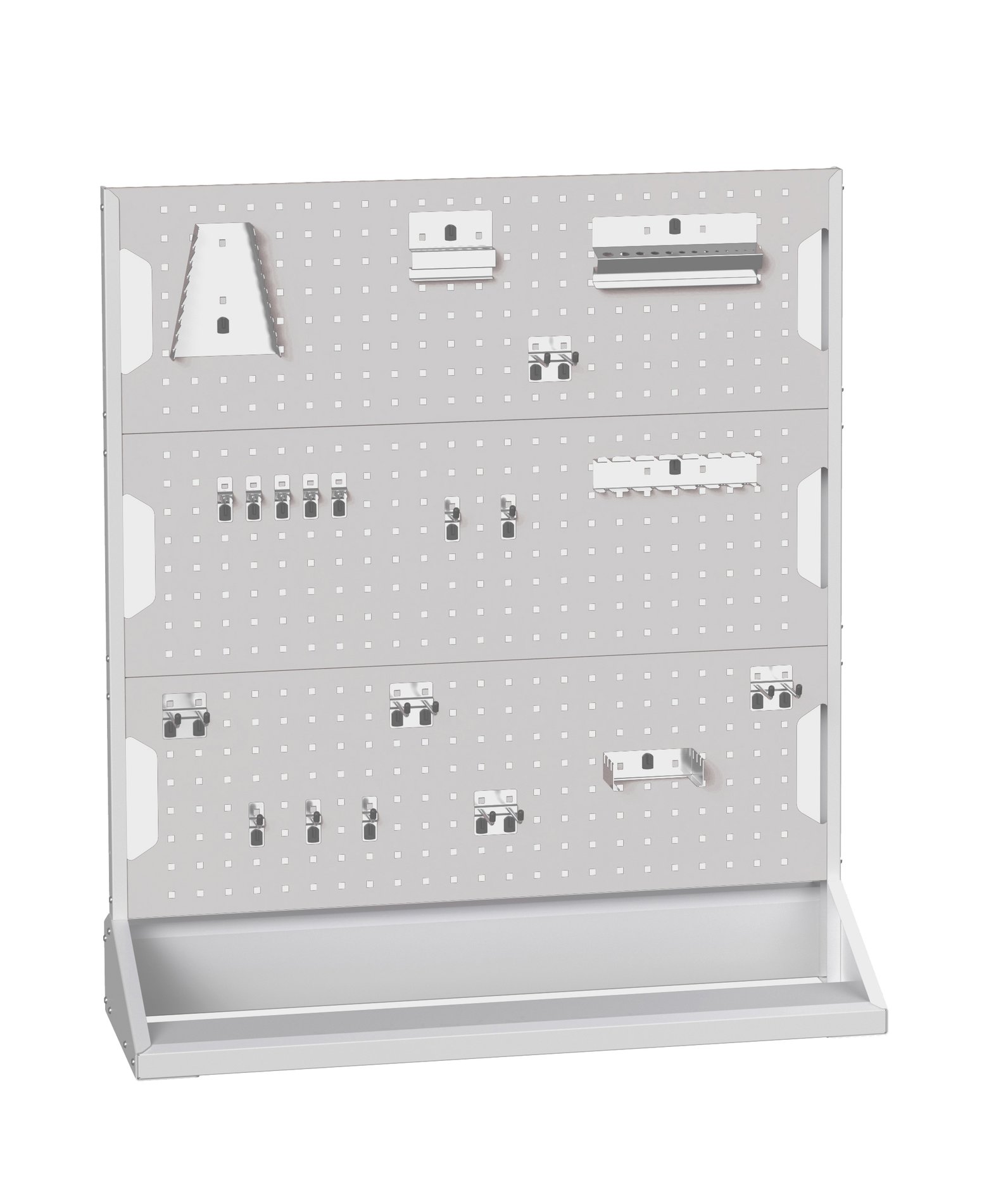 This is Sheet Steel Tool Rack manufactured by Bott. The manufacturer part number is 16917300.16V. Moreover, it has hooks(20), panel(3), rack(1) set contents . The product is made from highly stable and reliable sheet steel. It comes in panel rack & hook kit configuration. The product includes panel hook type tool storage .