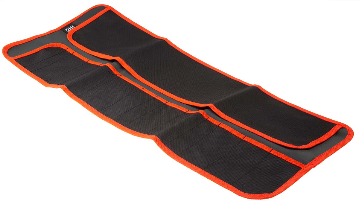 This is Black Polyester Tool Roll 650mm x 270mm manufactured by RS Pro. The manufacturer part number is 707-7271. Furthermore, the product is 270mm wide. It has a decent black colour. The product is made from highly stable and reliable polyester. Its accurate length is 650mm.