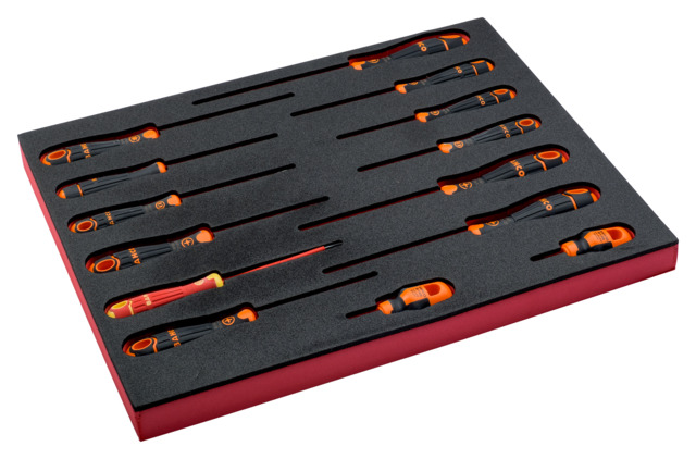 This is Tool Tray inner Dimensions 445 x 362 x 38mm W 362mm L 445mm H 38mm manufactured by Bahco. The manufacturer part number is FF1F1009. Furthermore, the product is 362mm wide. Its accurate length is 445mm. The given dimensions of the product include 445 x 362 x 38mm. The typical product's weight is 960g. In addition, the height is 38mm.