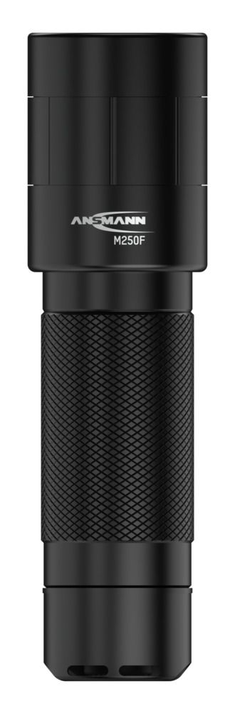 This is M250F LED Handheld LED Torch manufactured by Ansmann. The manufacturer part number is 1600-0171-520. It includes a torch style torch . Moreover, it is rechargeable no . The diameter of the head is [Head diameter]. It is IP rated with ip54. Features luminosity up to 260 lm. It has a decent black colour. Its accurate length is 123 mm. Its beam type is flood, spot . Furthermore, the product is 34.2 mm wide. It features 150 m range. Its overall weight with batteries is 157g . It includes a standard 3x aaa batteries . It has a model m250f. It is a type of led lamp. This product carries 5 w. The casing is constructed from highly stable aluminium material.