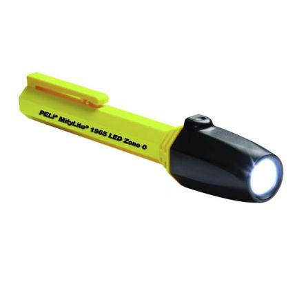 This is ATEX LED Torch 87 lm manufactured by Peli. The manufacturer part number is 1965-031-241E. Moreover, it is rechargeable no . It is suitable to be used in zone 0 . It is IP rated with ipx7. Features luminosity up to 87 lm. It has a decent yellow colour. Its accurate length is 139.2 mm. Its beam type is high . The product is certified with atex hazardous area certification. It features 41 m range. Its overall weight with batteries is 54g . It includes a standard aaa batteries . It has a model 1965. It is a type of led lamp. It is tailored for hazardous area yes . It includes a pocket torch style torch . The casing is constructed from highly stable pbt, polycarbonate material.