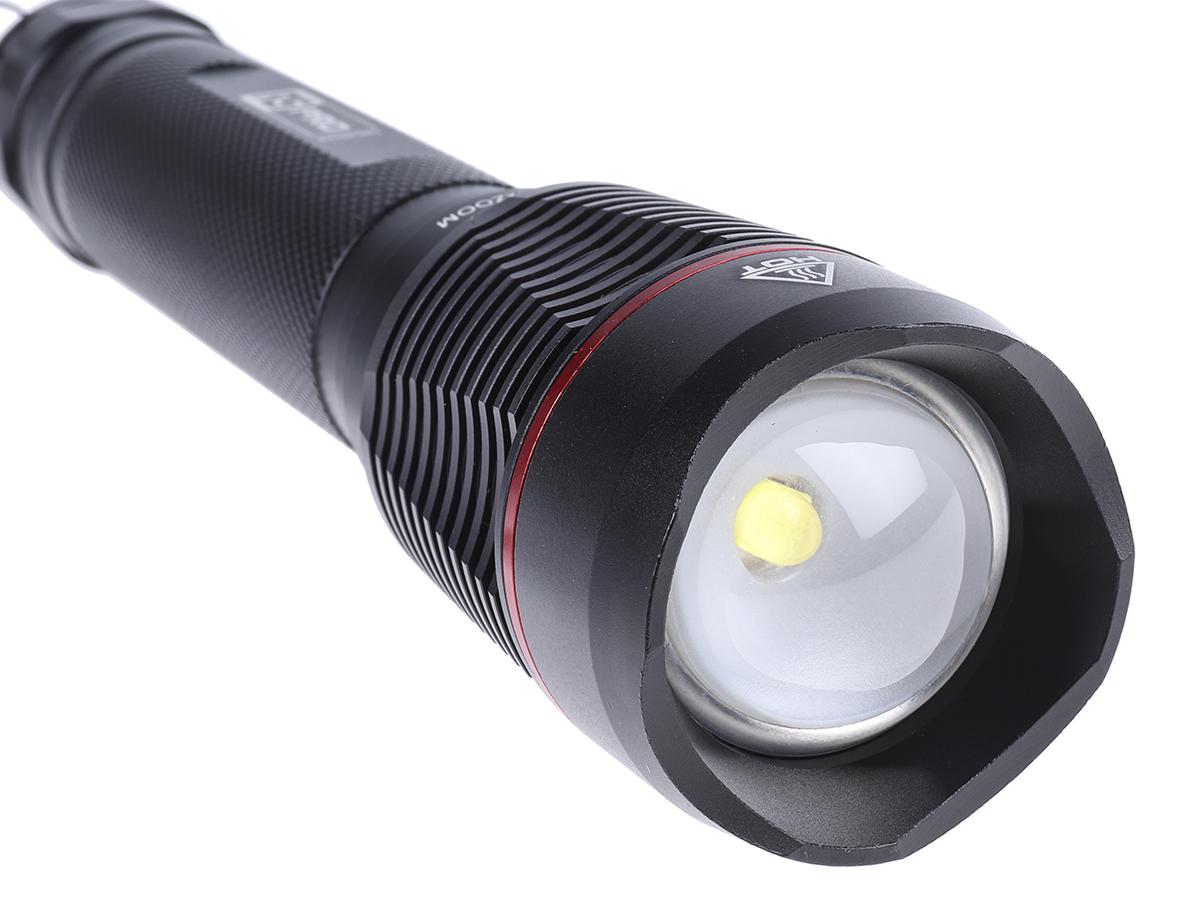 This is LED LED Flashlight 2600 lm manufactured by RS PRO. The manufacturer part number is 186-4624. The casing is constructed from highly stable aluminium material. It is IP rated with ip67. Features luminosity up to 2600 lm. It has a decent black colour. The product comes in 54.4 mm depth. It includes a standard 9 x lr6 aa 1.5v alkaline panasonic batteries batteries . Its accurate length is 240 mm. Its overall weight with batteries is 613g . It features 400 m range. It is a type of led lamp. It includes a torch style torch .