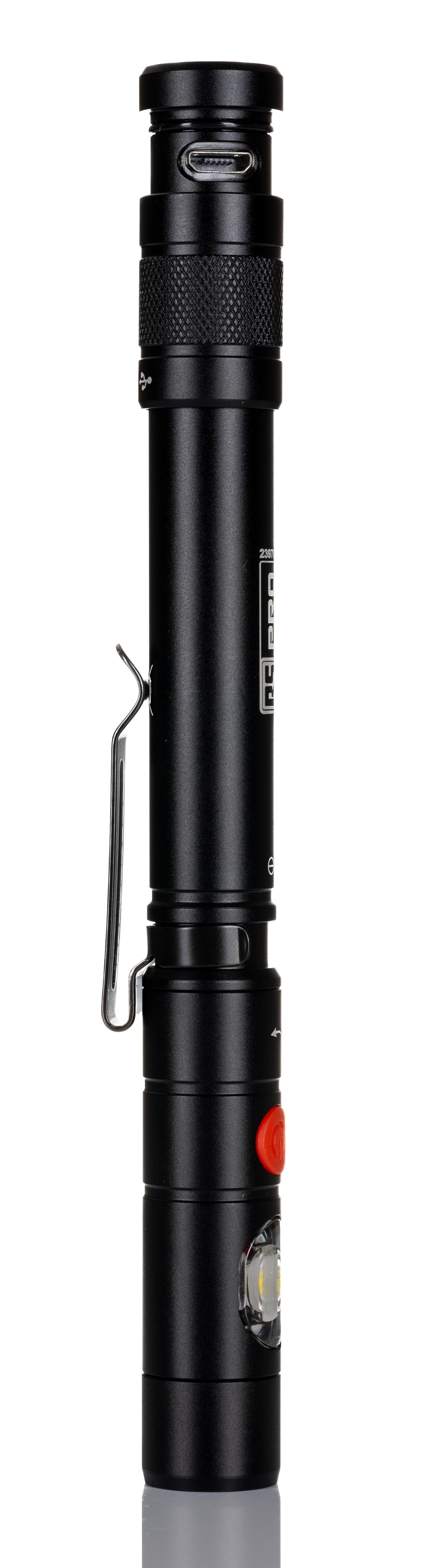 This is RSPRO-P47R LED Pen Torch Black - Rechargeable 375 lm 160 mm manufactured by RS PRO. The manufacturer part number is 239-7029. Moreover, it is rechargeable yes . It is IP rated with ip 64. Features luminosity up to 375 lm. It has a decent black colour. Water Resistant Options - yes. Its accurate length is 160 mm. Its beam type is high/low . The plug is a highly reliable usb with long service life. It includes a standard li-ion batteries . It is a type of led lamp. It includes a pen torch style torch . The casing is constructed from highly stable aluminium material.
