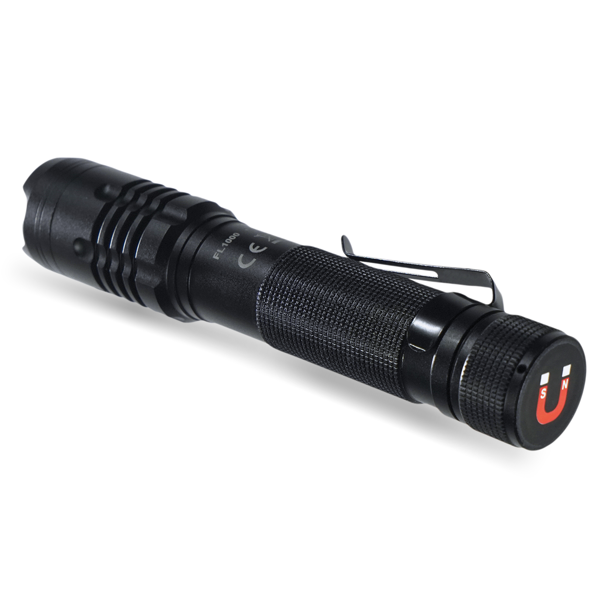 This is LED Torch Black - Rechargeable 1200 lm 174 mm manufactured by Observer Tools. The manufacturer part number is FL1000. The diameter of the head is [Head diameter]. Moreover, it is rechargeable yes . It is IP rated with ip65. Features luminosity up to 1200 lm. It has a decent black colour. Water Resistant Options - yes. It features 270 m range. Its beam type is focused . The plug is a highly reliable usb-c with long service life. It includes a standard li-ion batteries . Its accurate length is 174 mm. It has a model fl1000. It is a type of led lamp. It is tailored for hazardous area no . It includes a torch style torch . The casing is constructed from highly stable aluminium material.