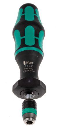 This is 1/4 in Hex Adjustable Torque Screwdriver 0.3 → 1.2nm manufactured by Wera. The manufacturer part number is 7440. Its driver is of a/an hex shape . In addition, its torque range is about 0.3 → 1.2nm . It is calibrated rscal . It has an overall length of 155 mm. The product has a drive size of 1/4 in. It comes in adjustable configuration. It provides high accuracy of ±6 %.