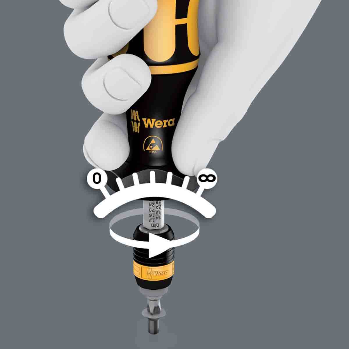 This is Adjustable Torque Screwdriver 1.2 → 3Nm 1/4 in Drive ESD Safe ±6 % Accuracy manufactured by Wera. The manufacturer part number is 05074731001. It has an overall length of 155 mm. In addition, its torque range is about 1.2 → 3nm . ESD Safety - yes. The product has a drive size of 1/4''. It comes in adjustable configuration. It provides high accuracy of ±6 %.