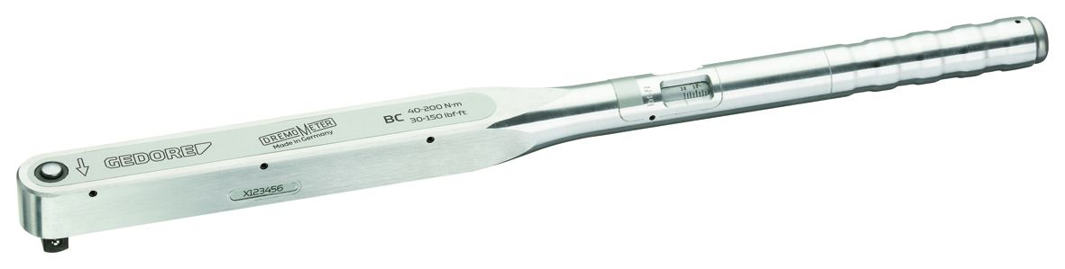 This is 1/2 in Square Drive Mechanical Torque Wrench Aluminium Alloy 40 → 200nm manufactured by Gedore. The manufacturer part number is 8573-00. Its driver is of a/an square shape . The product is made from highly stable and reliable aluminium alloy. Its scale graduations are about 5nm . In addition, its torque range is about 40 → 200nm . It has an overall length of 551 mm. The product has a drive size of 1/2 in. It provides high accuracy of ±3 %.