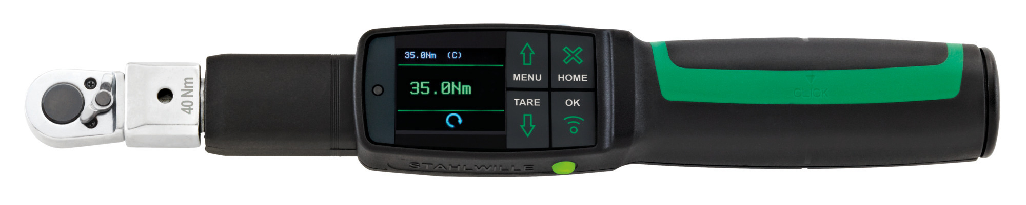 This is 1/4 in Square Drive Electromechanical Torque Wrench 4 → 40nm 9 x 12mm manufactured by STAHLWILLE. The manufacturer part number is 96501004. Its driver is of a/an square shape . It has an overall length of 295 mm. Its scale graduations are about 0.1 nm, 1nm . In addition, its torque range is about 4 → 40nm . Its insert size is about 9 x 12mm . The product has a drive size of 1/4 in. It has a model 714r. It provides high accuracy of ±1 (angle) %, ±2 (torque) %.